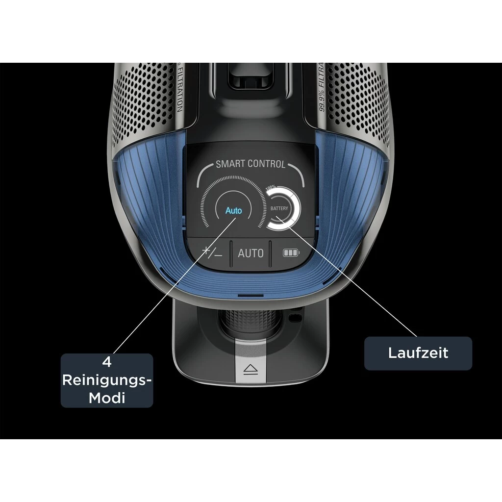 *bei Verwendung der Boost-Funktion; **bei Verwendung des Handstaubsaugers auf leistungsstarker Eco-Position; ***verglichen zu einem nicht flexiblen Gerät