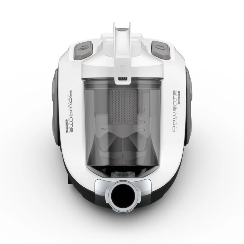 Rowenta Swift Power Cyclonic. Massima potenza in entrata: 750 W. Tipo: A cilindro, Tipo di pulizia: Secco, Tipo di contenitore della polvere: Senza sacchetto. Metodo di separazione dello sporco: Ciclonico, Emissione acustica: 77 dB. Colore del prodotto: Bianco, Grigio